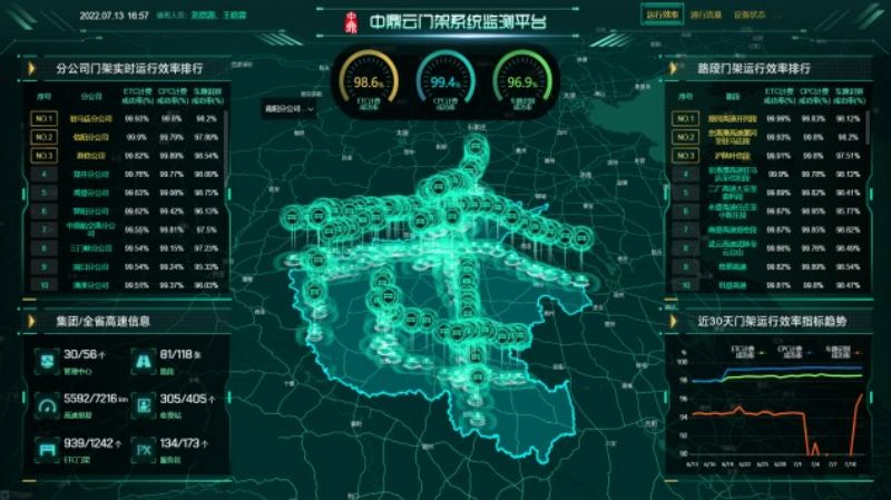 该系统运用大数据、云计算、互联网+、人工智能等新一代信息技术,注重资源集约、信息共享,整合集成动态监测、通信传输、数据处理、信息服务等信息资源,完成建设了集路网运行监测和协同调度指挥两大功能板块,包含流量监测、视频监控、拥堵监测、气象监测、收费站/服务区/隧道监测、热门路径、运营看板、事件协同处置功能、语音管理、报表统计等十大功能,以及事件智能监测、收费运营OD分析、互通立交转化率分析、信息发布四大特色亮点,打破资源壁垒,消除数据孤岛,加大业务协同,实现和确保了高速公路承载能力提升、全天候安全通行,形成“路网态势一张网,运行监测一张图,指挥调度一盘棋”的现代化路网运行管理新格局,提高高速公路运营管理水平,更好地服务于交通强省建设。